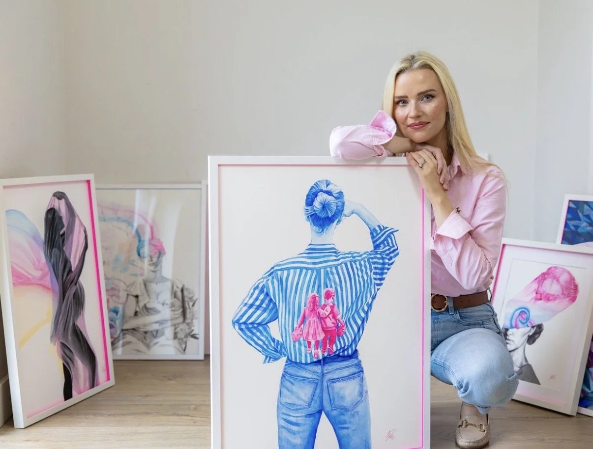 Holly Christine Callaghan is an Irish artist based in Wicklow, and mother of two, whose work explores the emotional landscape of motherhood, identity, and the female experience. Working across painting and illustration, her figurative compositions combine realism with symbolic imagery to reflect the inner world of early motherhood, a time often experienced as both tender and overwhelming.