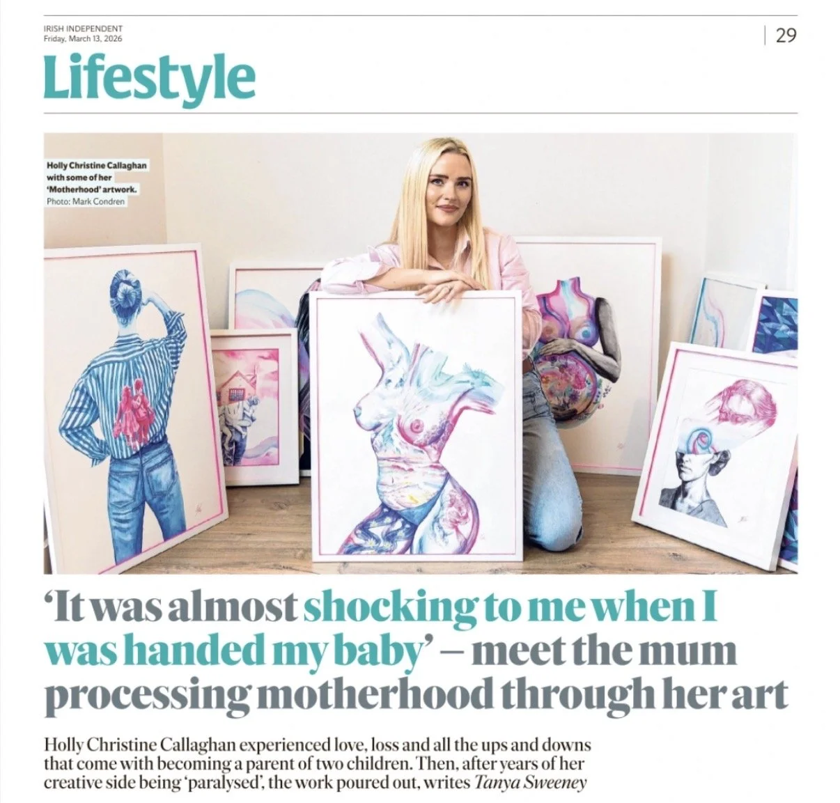 Lifestyle feature exploring Holly’s experience of processing motherhood through art.